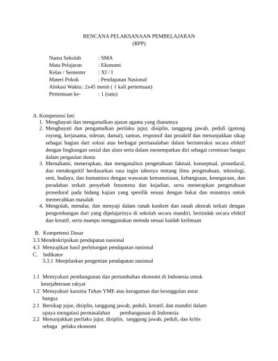 Rpp 1 halaman k13 sma/ma kelas 11 ekonomi semester 1, download rpp ekonomi kurikulum 2013 sma kelas 11 revisi 1 lembar, rpp silabus 1 lembar kelas 11.